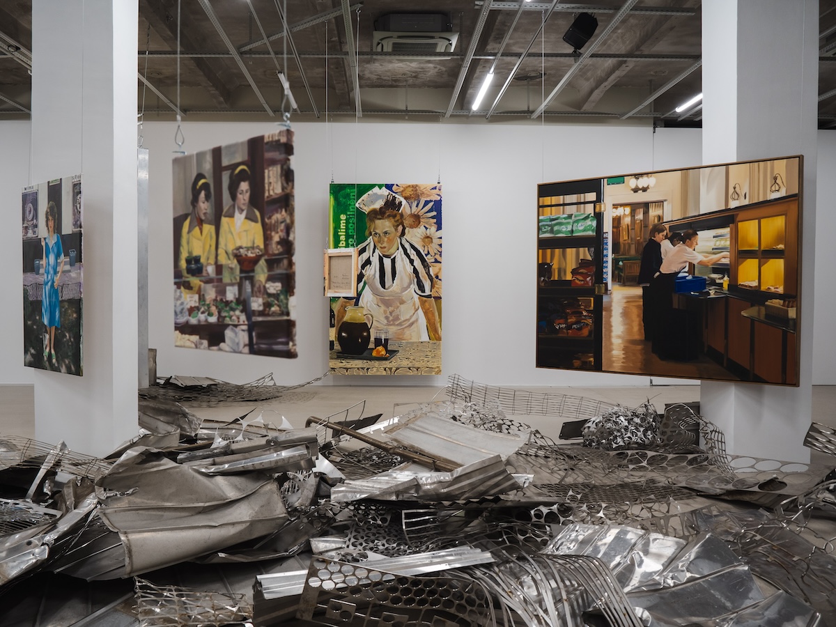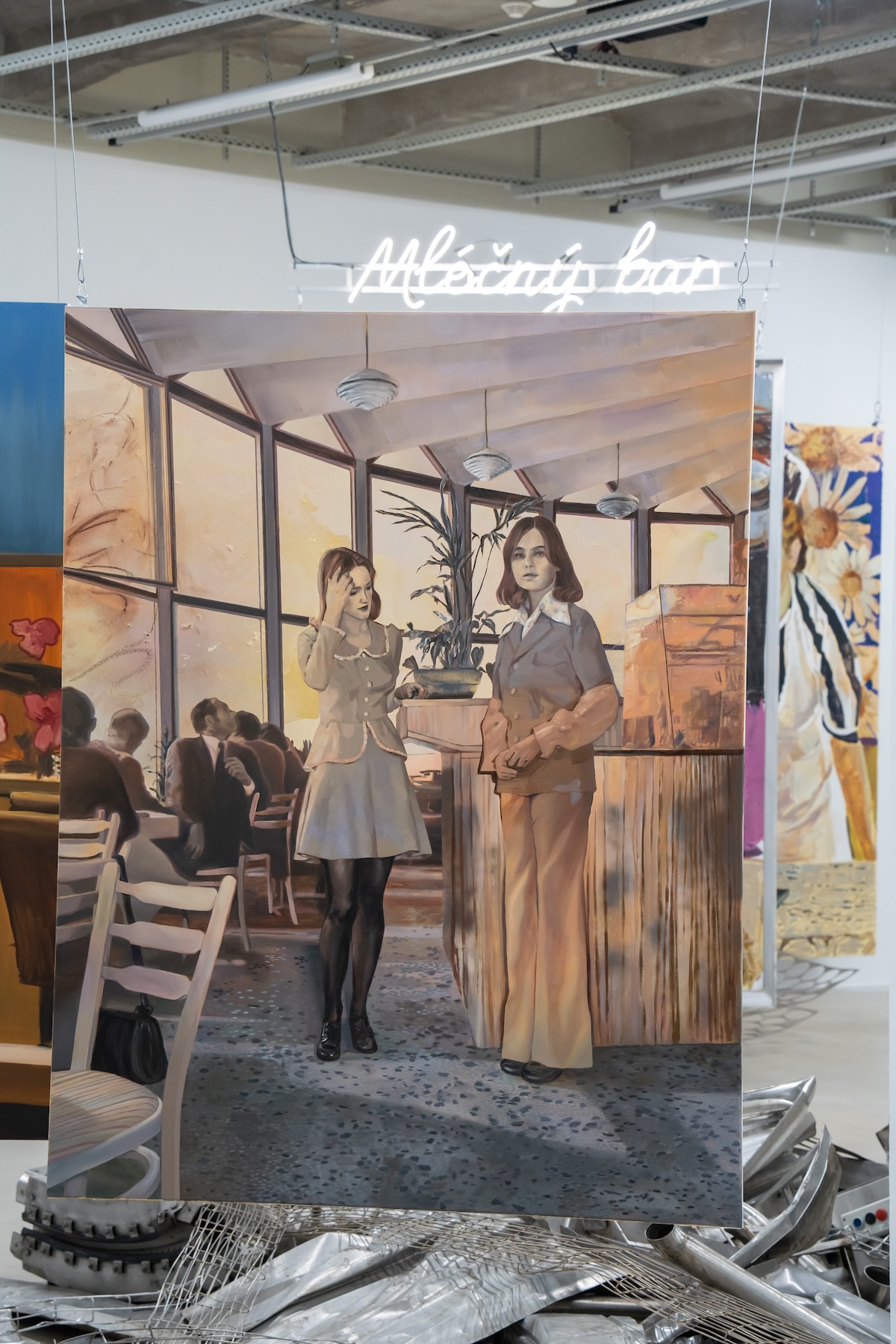 Autorky využívají malbu k tomu, aby znovu objevily a přetvořily vzpomínky na minulost. Jejich obrazy doplňuje rozsáhlá instalace a filmové dílo, které společně vytvářejí silnou vizuální atmosféru. Součástí výstavy jsou kovové prvky připomínající prostředí práce. Video zachycuje hlasy a tváře samotných autorek a mezi hromadami kovového materiálu zkoumá proměnu společnosti po pádu socialismu z feministické perspektivy. Významnou roli hraje také scénografie. Galerie se mění v mnohovrstevnatý prostor, kde se divák může cítit jako zákazník, zaměstnanec nebo pozorovatel.