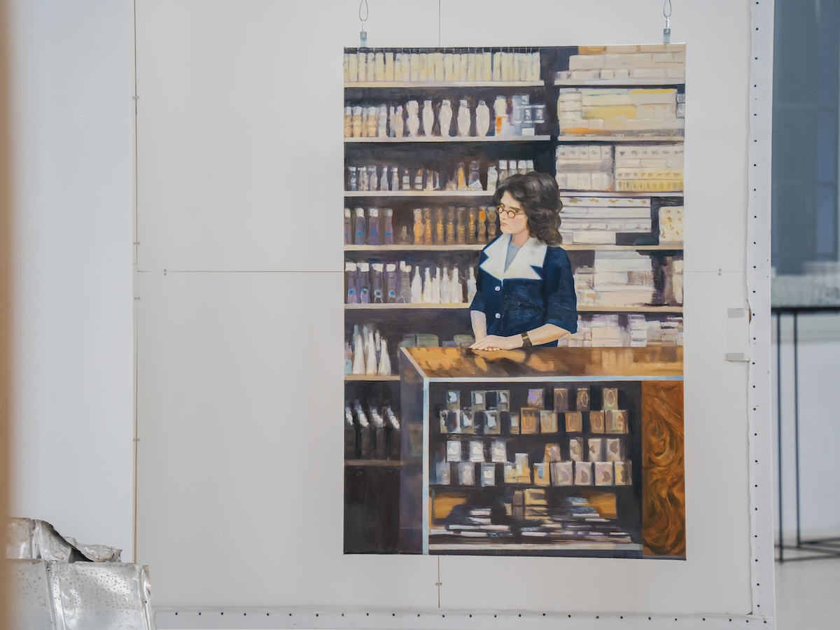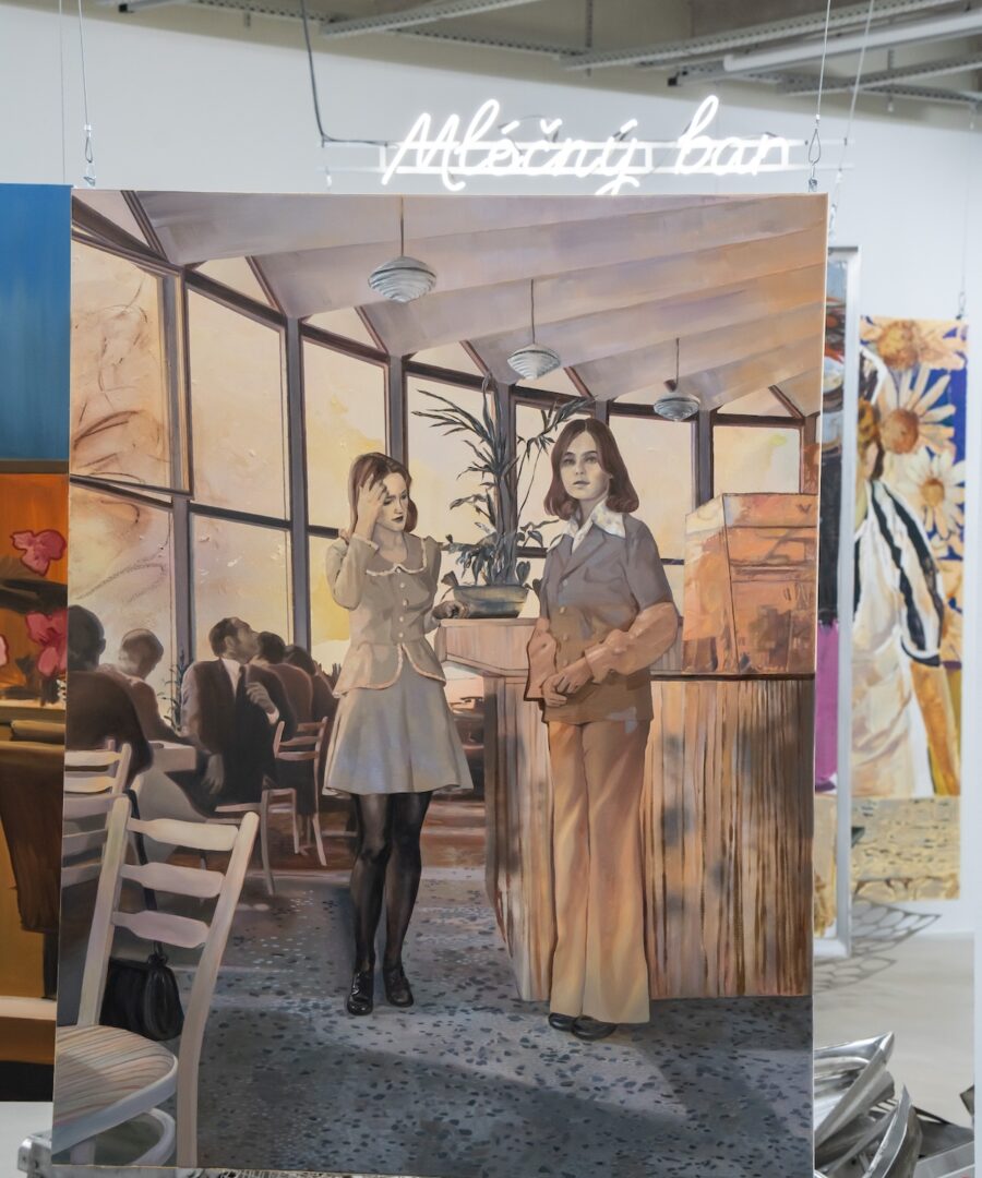 Výstava Za Pultem (Behind the Counter) v olomoucké Telegraph Gallery se zaměřuje na různé podoby ženskosti a prostřednictvím současných děl ukazuje, jak byly ženy zobrazovány během socialismu a československé normalizace. Inspirací je kultovní seriál Žena za pultem, jehož vizuální jazyk tři umělkyně – česká malířka Adéla Janská, polská autorka Paulina Olowska a skotská malířka Caroline Walker – přetvářejí do současné umělecké řeči.