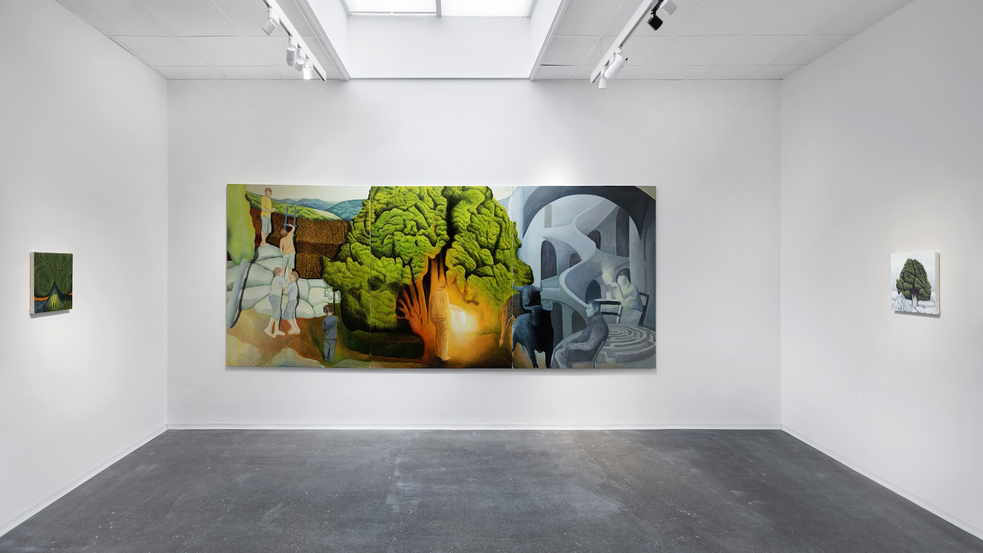 Samotná výstava Labyrint srdce a ráj světa je pozvánkou do vnitřního prostoru člověka a jeho hledání místa klidu v nečitelném světě. Aktuální série maleb je reflexí událostí posledních let, kterým je jedinec vystavován. Autor vnímá člověka jako bytost v labyrintu, kde je poutník neustále pokoušen vábením okolí, případně je nucen přijímat cesty, které mu život předkládá. V tomto labyrintu není podstatné, jak vypadá na pohled, ale to, že tvoří kostru, na které se odehrává drama každodenního lidského osudu.