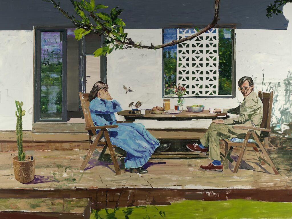 Mezi nejznámější umělce výstavy patří Adrian Ghenie, jehož díla lze zhlédnout hned u vstupu do výstavy. Není divu – jeho obrazy dnes na aukcích dosahují astronomických částek. Rekord drží monumentální, více než tři metry široké plátno Pie Fight Interior 12 z roku 2014, které se před čtyřmi lety v aukční síni Christie’s v Hongkongu vydražilo za zhruba 214 milionů korun. Ghenieho díla jsou zastoupena ve sbírkách předních světových institucí, jako jsou pařížské Centre Pompidou, londýnská Tate či Sanfranciské muzeum moderního umění (SFMOMA). Vystavoval také ve vídeňské Albertině, kde se v roce 2024 uskutečnila jeho samostatná výstava Adrian Ghenie: Shadow Painting.