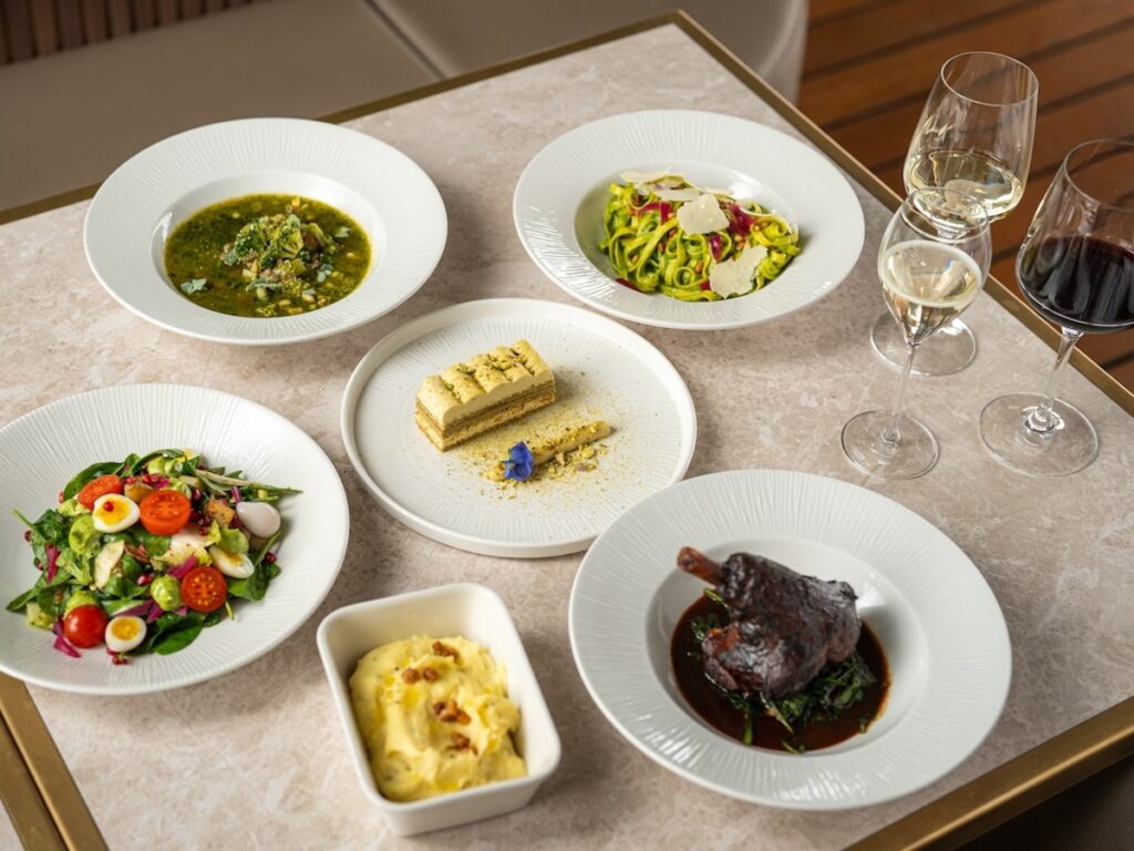 Ve svátečním menu restaurace Marina Ristorante se jaro a Velikonoce setkávají s italskou kuchyní. Úvod speciální nabídky tvoří salát z trhaných listů s hráškem, cherry rajčaty, červenou cibulkou, granátovým jablkem, křepelčími vejci a pečenými bramborami grenaille. Doplněný je majonézou z medvědího česneku a jemným medovo-hořčičným dresinkem. Následuje zeleninová polévka s rukolovým pestem, fregolou a hoblinkami parmazánu. Italskou tradici reprezentují tagliatelle s medvědím česnekem, piniovými oříšky, nakládanou červenou cibulkou a parmazánem. Milovníky velikonočních specialit zase potěší konfitované jehněčí kolínko s restovaným listovým špenátem a bramborovým pyré s praženým lardem. Sladkou tečkou je pistáciový dortík s jemným krémem ze sýru Philadelphia.