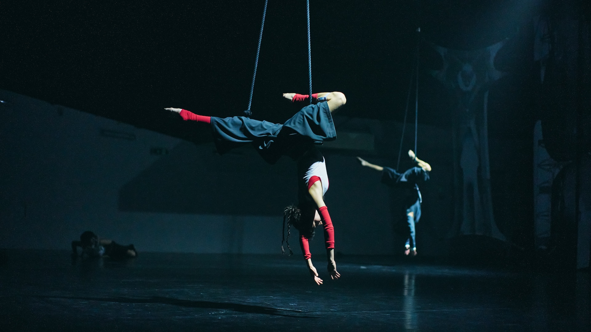 Studio Hrdinů pravidelně uvádí inscenace tanečního a pohybového divadla ve spolupráci s polskými tvůrci. Výrazná byla například Fata Morgana choreografa Pawła Sakowicze, nyní je to spolupráce s choreografkou Izou Szostak. Její inscenace Trapéza si pohrává s paralelou „mezi cirkusem a současnou dobou plnou napětí“. Objevuje se v ní téma strachu a rizika, které je samozřejmou součástí cirkusu coby prostředí i profese. Ale ve výsledku akcentuje jiné symptomy naší doby, než je strach.